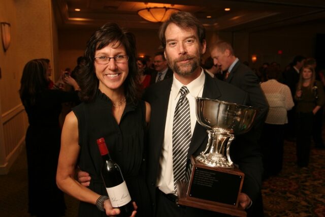 Jeff and wife Kelly holding the 2012 Governor’s Cup and the 2009 Glen Manor Vineyard’s Hodder Hill that earned it – Courtesy Photo/Glen Manor Vineyards