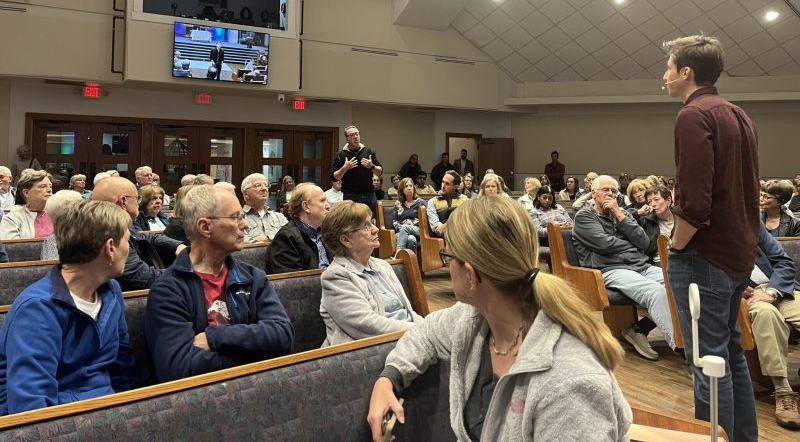 Ahead of the vote, community members held their own rally to learn more about data centers and their effects on nearby neighborhoods. The Sierra Club gave a presentation on noise, diesel generator use, and other environmental issues that left many in the audience grumbling and upset.
