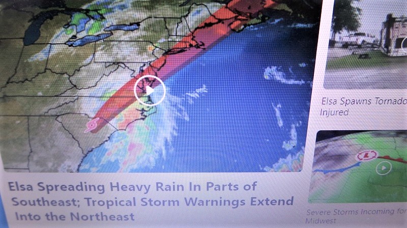 Weather Channel radar image of Elsa’s projected northward path. Royal Examiner Photos by Roger Bianchini