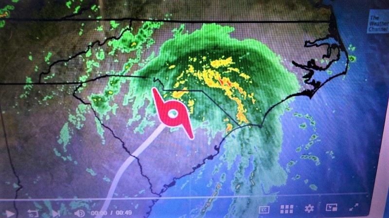 Weather Channel radar image of Elsa crossing into North Carolina Thursday. – It is likely those outer bands pictured to left of the storm’s body that we are on the lookout for as the day progresses into evening.