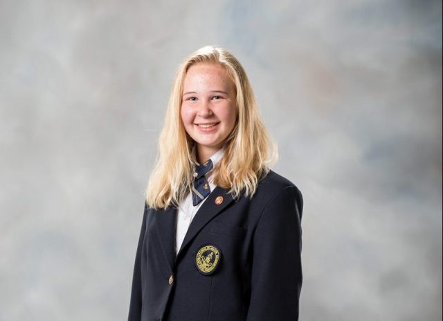Peyton Kaufman of Front Royal, VA the daughter of David and Monica Kaufman of Front Royal, VA and an eighth grade student at R-MA during the 2018-19 school year. Peyton received the Outstanding Student Award for English 8 Composition, Physical Science, Physical Education, and World History I. She was also recognized during the ceremony for achieving the Principal’s List (3.5 to 3.9 GPA) every quarter during the school year. In addition, Peyton was honored for her service as the 2018-19 Interact Club Vice President. Her final award of the ceremony came when she was recognized with the Most Genteel Female Award, given to the student who best demonstrates the qualities of gentility, such as courtesy, graciousness, and thoughtfulness to others.
