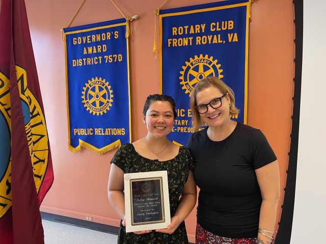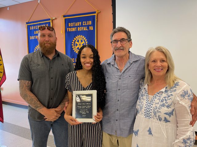 The now graduated Warren County High School student who a week before received a $5,000 scholarship award returned to the Rotary Club of Front Royal May 21 to be recognized for his athletic successes.