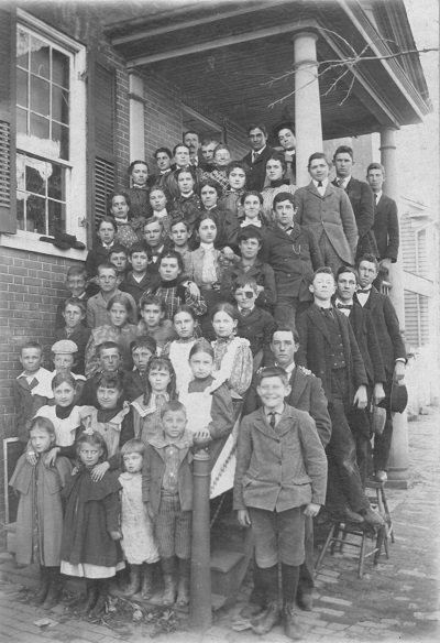 Students who attended Stephens City Academy private school at Captain Joseph Long Tavern are standing on the front steps of this building on Main and Locust Streets in 1899. Photos courtesy of Stone House Foundation.