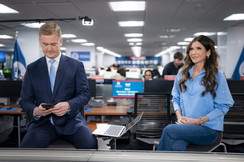 Noem sits for a television interview with Peter Doocy of Fox News at the Federal Emergency Management Agency headquarters in Washington, D.C., on Jan. 25, 2026. (Photo by Tia Dufour/DHS)