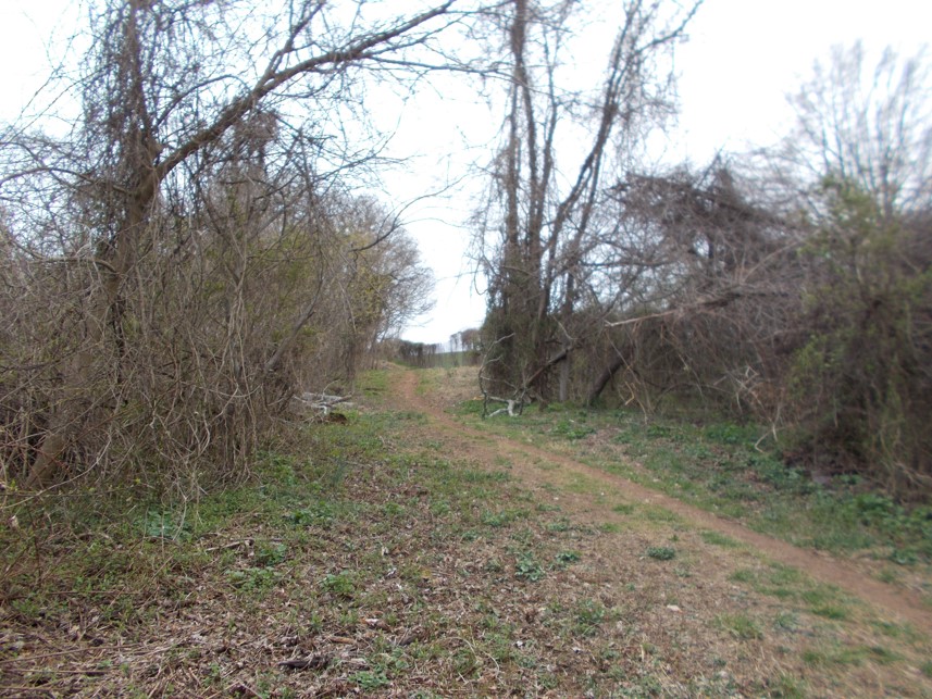 The southern Warren County access point to the trail on the west side of Rt. 522 South rises adjacent to the overgrown barbed-wire fence at right, marking the boundary with the Smithsonian property.