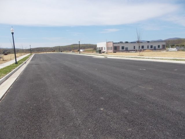 Contrasting portrait: what is of ITFederal as of dueling legal filings in October 2019 – an unfinished 10,000 s.f. office building accessed by Phase One of the West Main St. connector road.