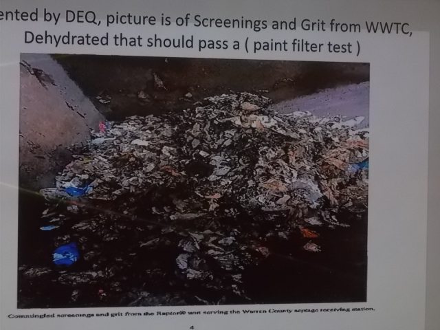 “We are now having (contracted hauler) Republic haul the screening & grit from the Town treatment plant and the County Septage Receiving Station straight to the Page County landfill. Again, due to the County’s request – not us agreeing to it – it will increase the costs to county citizens. I want to emphasize the County can take the material per DEQ if they want to and save taxpayer’s dollar.”