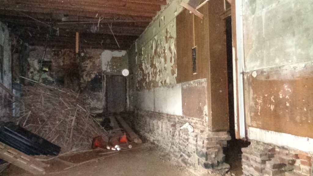 After signing physical liability waiver forms and seeing the rather precarious entry way from a first floor entrance to ground level – literally, the first floor was gone – the BAR’s three female members, Mayor Hollis Tharpe, McDonald (“I’ve been in it before”) decided discretion was the better part of valor. The smart ones I would call them, satisfied themselves with a look in at the side entryway and the immediately visible portion of the crumbling shell of the once majestic downtown hotel.