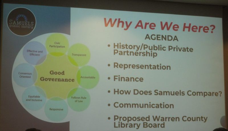 Toward the meeting’s end with much ground having been covered, and many crticial questions regarding potential lost revenue, including grant and state funding, not to mention County control of future donations made to the library being diverted elsewhere in the County budget, several library patrons present noted that with the absence of verifiable answers to such crucial issues the only logical action for the Warren County Board of Supervisors this Tuesday, December 10, was to table a vote, if not the public hearing itself, until further face-to-face discussion between the supervisors and library officials, and legal counsel as necessary, regarding actual financial and other impacts could occur.
