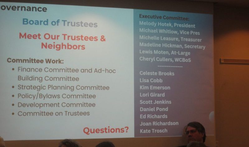 As general background and an overview of the implications of the County proposal were introduced Saturday, the presence of the three supervisors cited above was acknowledged. That opening portion of Saturday’s meeting included some new information. That was the draft enabling ordinance up for a vote Tuesday that was circulated by the County the day after the December 4th first Library Q&A Public Meeting. It includes appointment authority, one per supervisor, as well as terms, officers, power and duties, and budget disbursement and records.