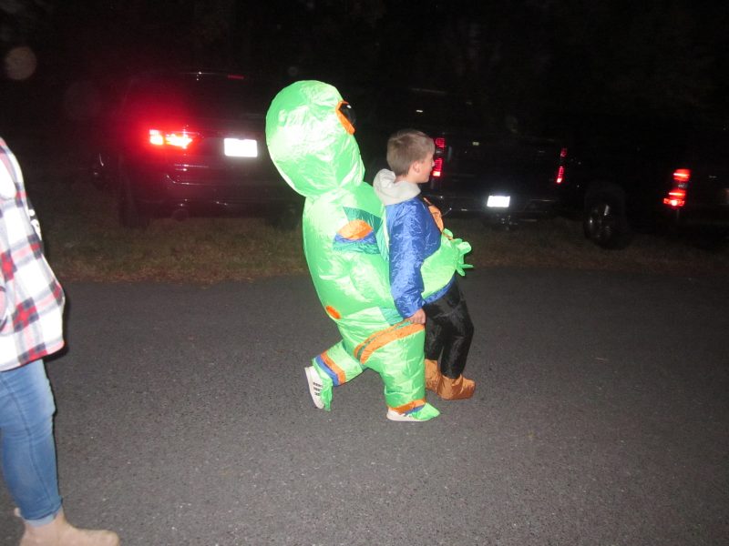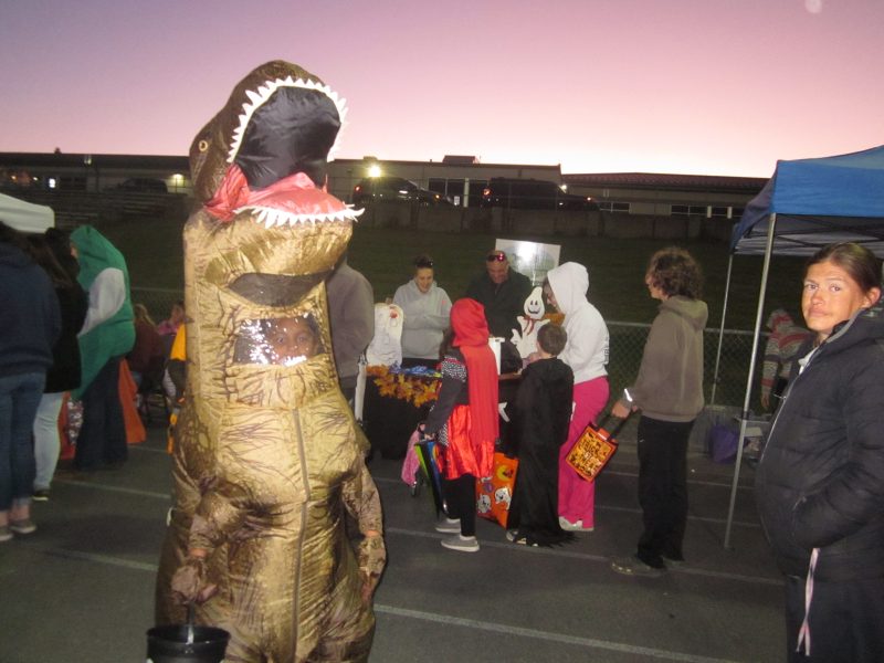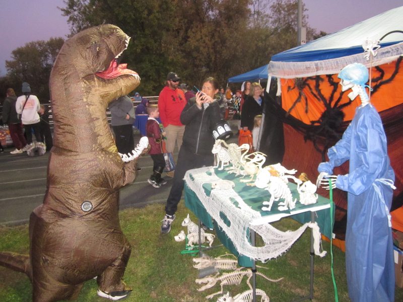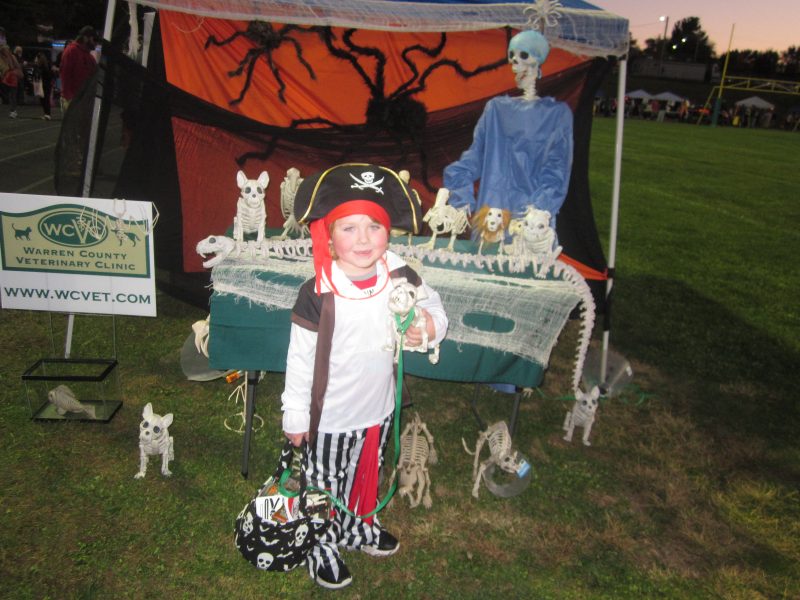 Co-host Parks & Rec Department booth – do the goblins smell treats there? Below, this pirate picks up a skeletal pet to help get him thru to Halloween.