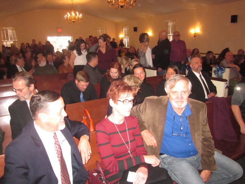 Presiding over the ceremony at Maddox Funeral Home in Front Royal was lay minister and personal friend of James’, the Reverend Michael Williams. In opening the memorial service in front of a standing room only crowd, Williams noted how difficult it was when the deceased was someone you knew and loved as a friend. James’ daughter and bandmate, Reno, emotionally recounted her father’s life as one of love distributed not only to her and other family members but also to his valued bandmates and friends.