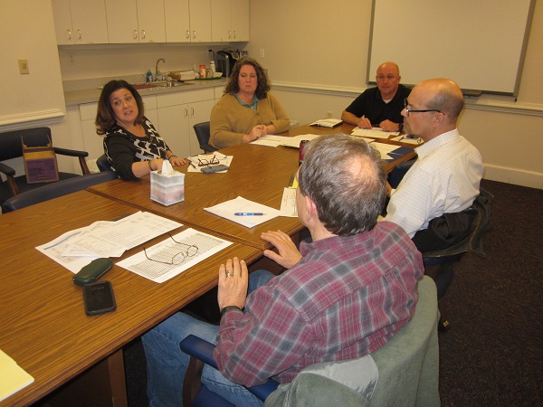 The Joint County-Schools Budget Committee gets down to business Friday afternoon, March 1. Schools Finance Director Rob Ballentine was also present, but seated out of frame at the near end of the table. Royal Examiner Photos Roger Bianchini