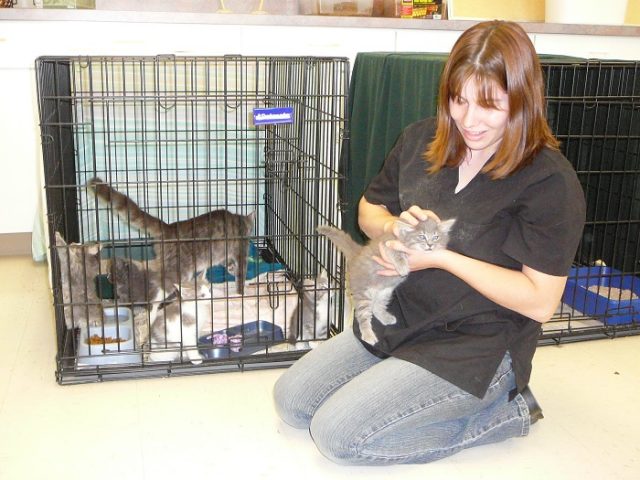 ‘Adopt Me’ is the annual refrain at the HSWC’s Julia Wagner Animal Shelter – and a low-cost spay and neuter clinic on the horizon will help reduce costs for those who wish to adopt. Below, clinic staffer with some of orphaned cats and kittens. It is hoped the discount spay and neuter clinic will help curb a rising tide of feral and stray cats in Warren County. Royal Examiner File Photos