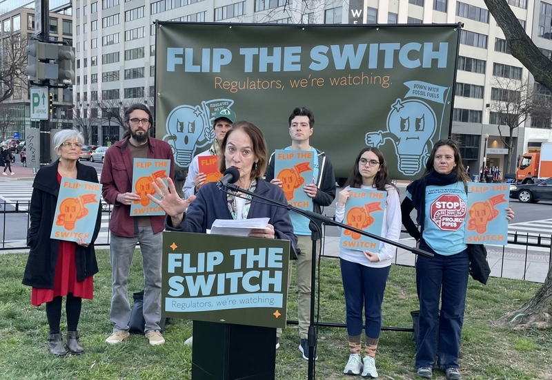 On Monday, across the street from the Washington, D.C., hotel where the National Association of Regulatory Utility Commissioners was holding its winter policy meeting, a group of climate justice organizations held a rally to call attention to energy company influence, taking aim at corporate sponsorship of the event and a lack of progress on renewable power.