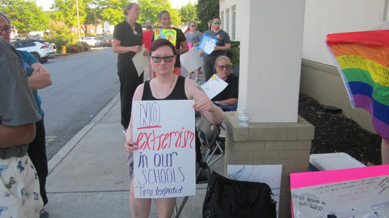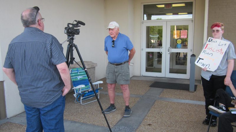 More signs were displayed outside the WCGC in the hours preceding the open meeting in support of the library and alternate sexual identity lifestyle content being available under parental supervision. Royal Examiner’s camera was there to video comments by some of those present, including in the final shot a U.S. military vet who recounted the negative impact of the imposition of a dictatorial, religiously based government in Iran, where he had been stationed prior to that government’s imposition.