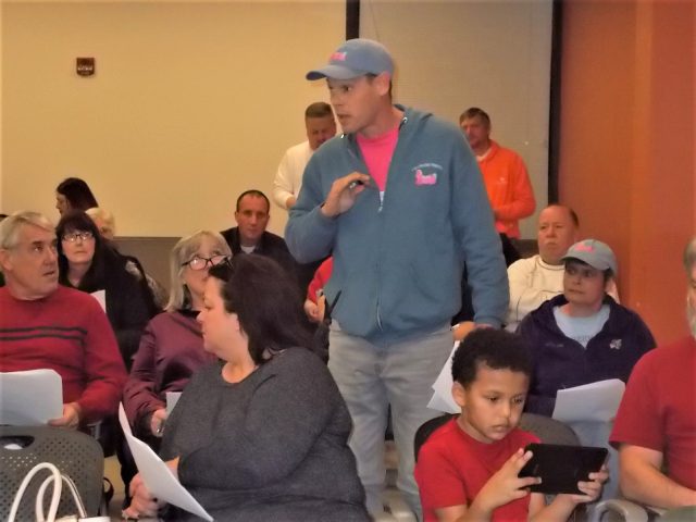 Interim Town Manager Matt Tederick, fresh from his grilling by mostly angry citizens reacting to his radical proposal to downsize the town government function as part of his FY 2021 Town Budget proposal, helped Envision Meeting Facilitator Chips Lickson poll 30 to 40 present on their opinions on how a consensus should be reached and on what criteria that consensus should be based.