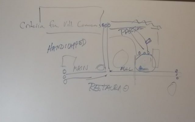 Well, that certainly explains it – uncredited artists’ whiteboard rendition of parking, road closure variables in the Gazebo-Village Commons area at East Main and Chester Streets.