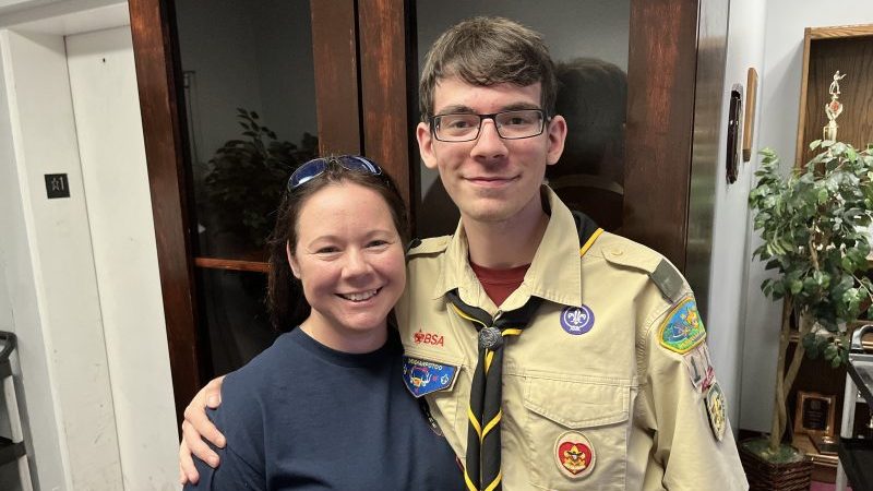 Proud mom Jennifer Horne and Eagle Scout Eli Horne.