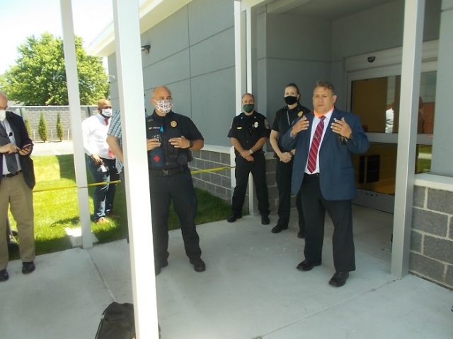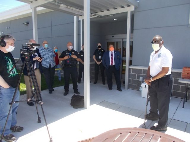 Moderating at the noon event held in the outdoor foyer area of the Monroe Avenue Front Royal Police Department headquarters was Warren-Page County NAACP President Alford D. Carter III. Carter was accompanied by his son, Alford IV, the Reverend Alfred Wood who performed an invocation and closing prayer, and about five other members of the black community. In addition to FRPD Chief Kahle Magalis and Warren County Sheriff Mark Butler, attending were Front Royal Mayor Gene Tewalt, County Board and Emergency Management Team Chairman Walt Mabe and County Emergency Services Deputy Manager Rick Farrall, among other officers from both local law enforcement agencies. Joining that crowd was Strasburg Police Chief Wayne Sagar.
