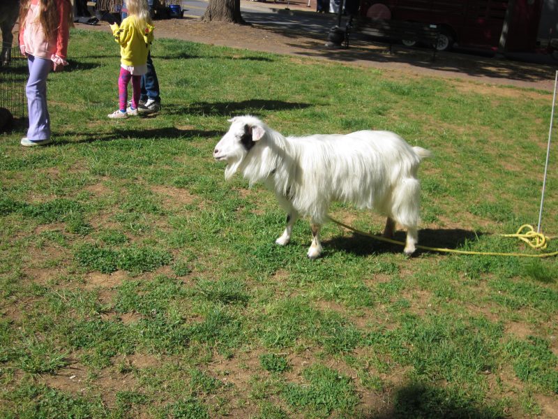 Sometimes persistence pays off, as it did for this lonely goat seeking a pat on the back. Further below, a cow gets in on the petting action.