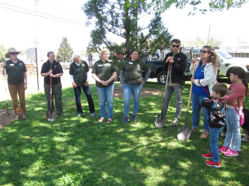 At 1 p.m. involved committee and other members and public officials were on hand, including Front Royal Mayor Lori Cockrell and new Town Manager Joe Petty to join Proctor and Hotek in dedicating the newly, park planted Eastern Redbuds. Proctor launched the last phase of the plantings, the final filling in of the holes the trees had been set in, flanking one Maple tree planted at a previous Lone Pine Day.