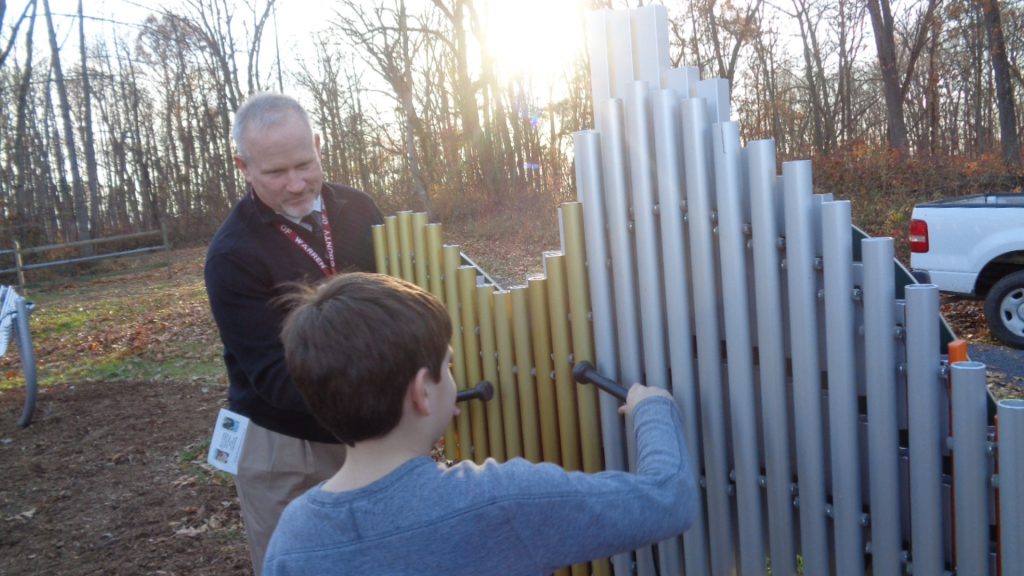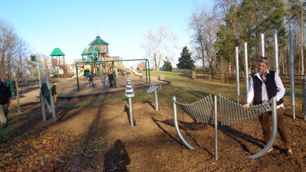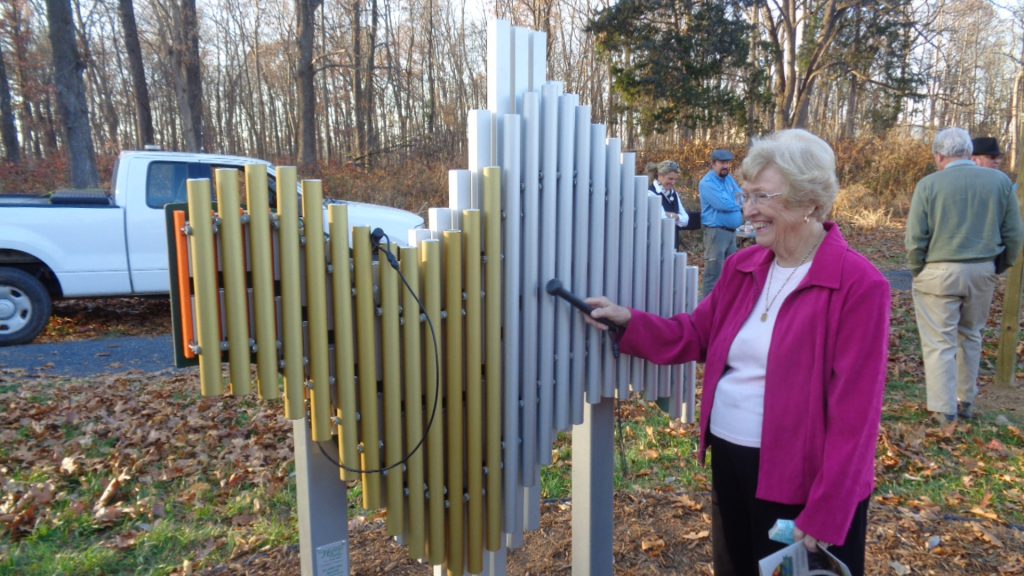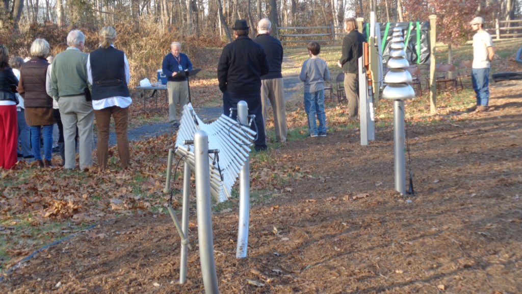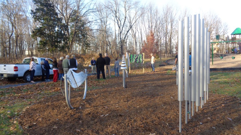 Lenz explained how Ms. Hultquist brought the idea of an outdoor musical park to him after having seen one on a family visit out west. The sculptured, all weather instruments are described as “Multigenerational Interactive Play” designed for “all abilities, all ages – Everyone Can Play” the dedication program observed.