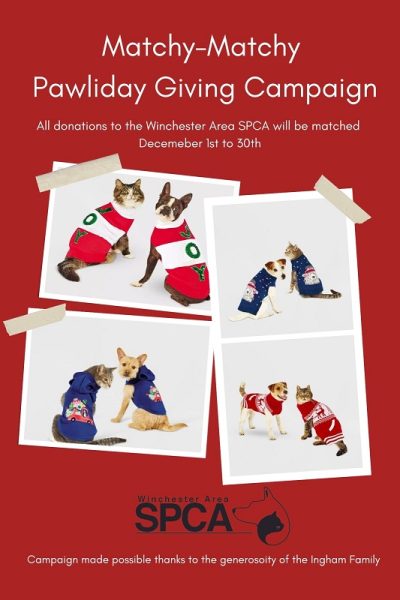 Matchy-Matchy Pawliday Giving Campaign at the Winchester Area SPCA