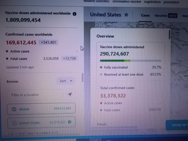 Those vaccines have been deemed by the CDC to be increasingly effective in, not only preventing symptoms upon exposure but also limiting transmission of the Coronavirus by vaccinated people who have been exposed. COVID-19 has reportedly claimed 58 lives locally (plus-three since May 5) and over 11,140 statewide, among the nearly 590,000 deaths reported nationally and 3.5 million globally over the past year and a half.