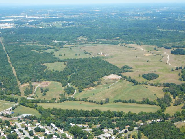 An aerial view of Crooked Run 1’s Target-based commercial center – Crooked Run 2’s now planned residentially-based development lies to the west, at upper right of photo. Royal Examiner File Photo Courtesy CassAviation