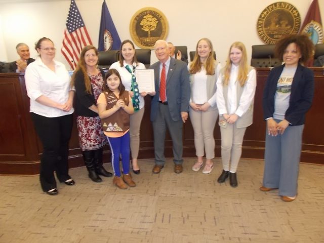 Girl Scout Service Unit 14-4 leads council in Pledge of Allegiance. Photos by Roger Bianchini. Video by Mark Williams, Royal Examiner.