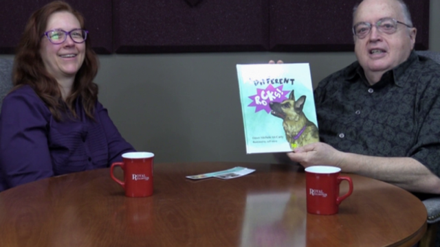 Dawn Michele McCarty, children’s author of Being Different Rocks!, with Royal Examiner publisher Mike McCool. Photo and video by Mark Williams.
