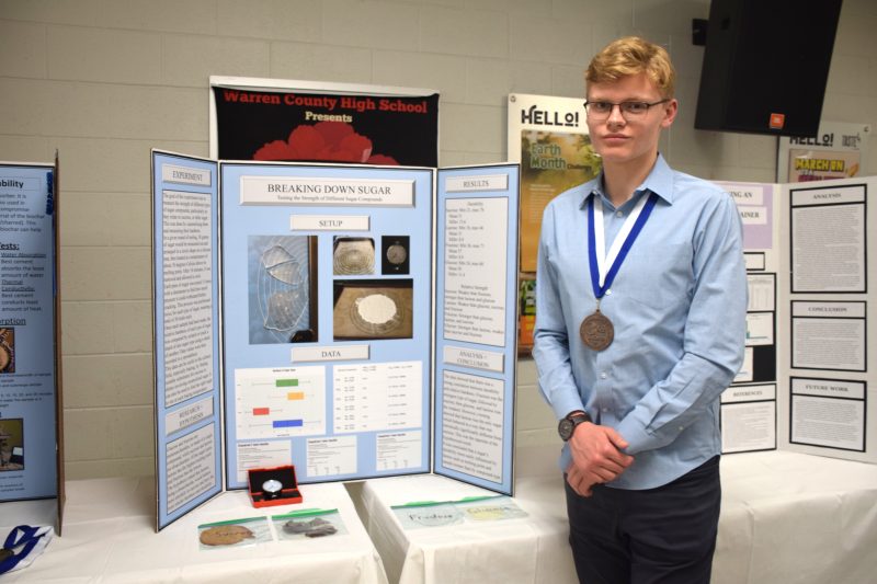 Jack Dueck, Senior, Breaking Down Sugar – Testing the Strength of Different Sugar Compounds, 3rd place, Chemistry.