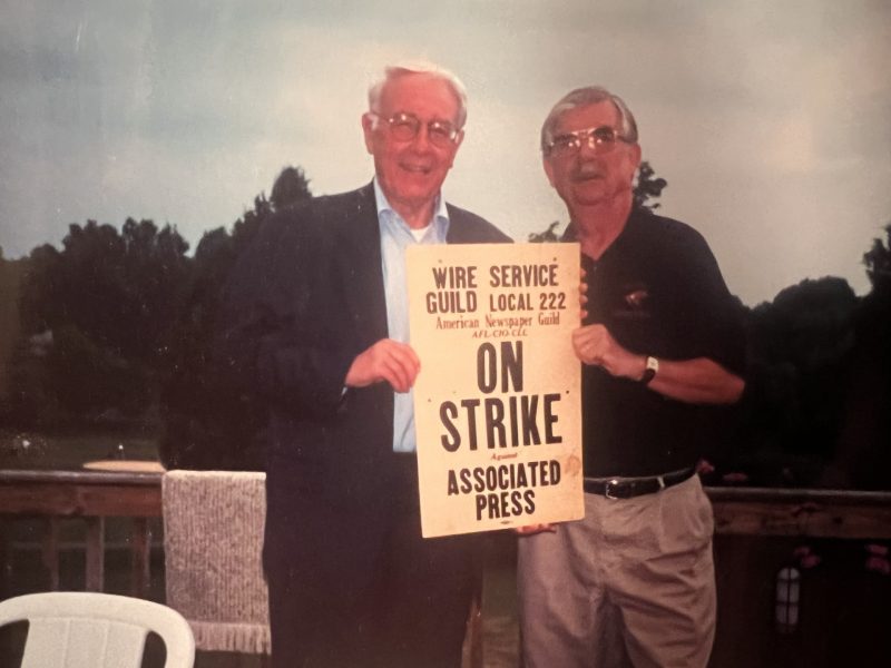 Barr, at the end of his Associated Press days with colleague Jim Lagier (left), as he leads a nationwide strike against the AP in 1969. Courtesy Photos the Barr family