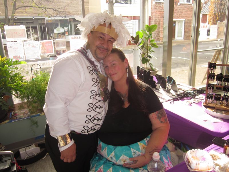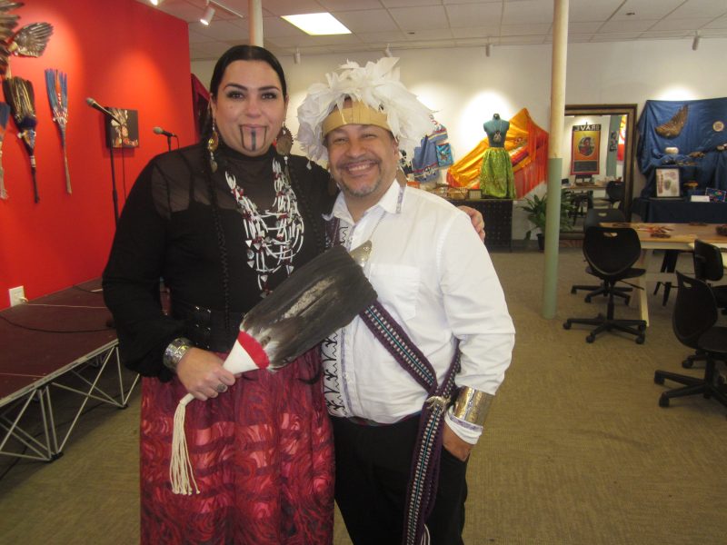 Our interest piqued, we dropped in on day 2, Sunday, November 17, to meet event organizer Patrick Littlewolf Brooks and experience the event presented through his Five Feathers Productions company. We soon learned it was a family affair with Brooks’ wife Ashliegh stationed at the Stone Branch Arts Center entrance, and his sister “Little Snowbird” Jones with her own historical-cultural display area, which she introduced us to while her brother was busy overseeing the multi-faceted event that included arts projects targeting the younger event visitors, with parental input welcomed.