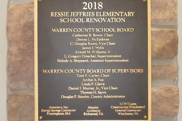 A plaque near the school’s refurbished main entranceway noting the original dedication of Ressie Jeffries Intermediate School, calls the school’s namesake an “Educator, Neighbor and Friend”. Dated December 15, 1976, that original dedication to the school’s namesake is signed by the sitting Warren County School Board.
