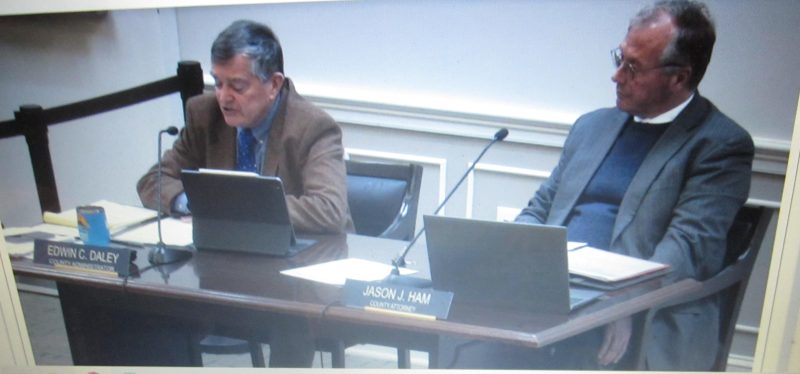 As the Open Meeting began just after its officially advertised starting time of 7 p.m., County Administrator Ed Daley polled the board on the annual appointment of officers, the board’s chairman and vice-chairman. Fork District representative Vicky Cook made both nominations, of current Vice-Chairman “Jay” Butler as chairman and John Stanmeyer as vice-chairman. Both nominations were approved by 5-0 votes.
