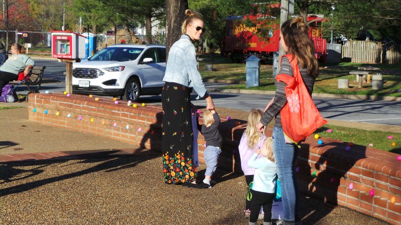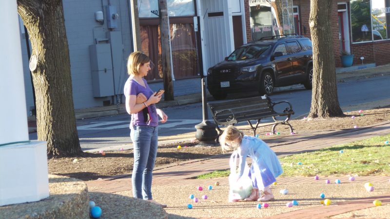 ‘Look, there are eggs over there too!’ this happy egg hunter alerts mom and sis. Royal Examiner Photos by Roger Bianchini