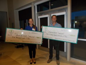 Ali and Dan Haney hold the checks they received as Judge’s Choice and People’s Choice in the RISE event at LFCC. Photo/Norma Jean Shaw