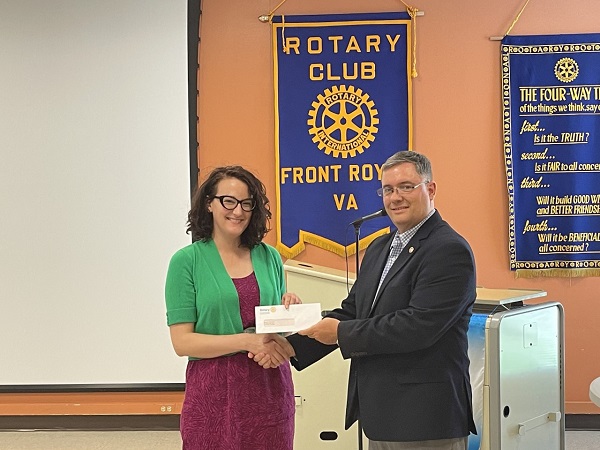 In his penultimate meeting as president of the Rotary Club of Front Royal, Derrick Leisure presented another $7,600 in gifts to eight non-profits and announced that a recent annual golf tournament for the club’s scholarship winners had sent $15,000 to the bank for next year’s group of high school applicants.