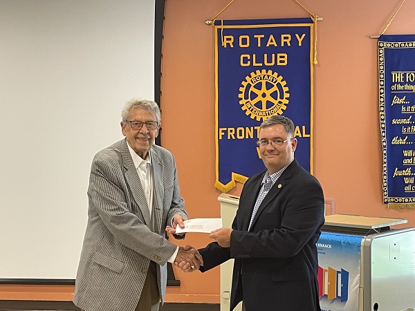 Samuels Public Library Executive Director Michelle Ross received check for $1,000 from FR Rotary President Derrick Leisure. FR Rotary Courtesy Photos Bret Hrbek