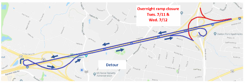 Overnight closures of ramps from westbound I-66 to Route 123 – July 11 and 12, detours in place