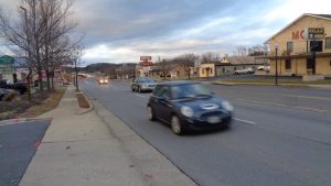 Traffic moves along Shenandoah Avenue near where a pedestrian was struck Monday evening. (Photo Roger Bianchini.)