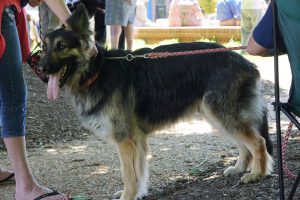 A German Shepherd rescue is in the shade at one of the author’s Memorial “Dog Day” events , and out of the late-spring sun – maybe we can bring all the county’s dogs in – and out of the hot and cold aura of neglect.