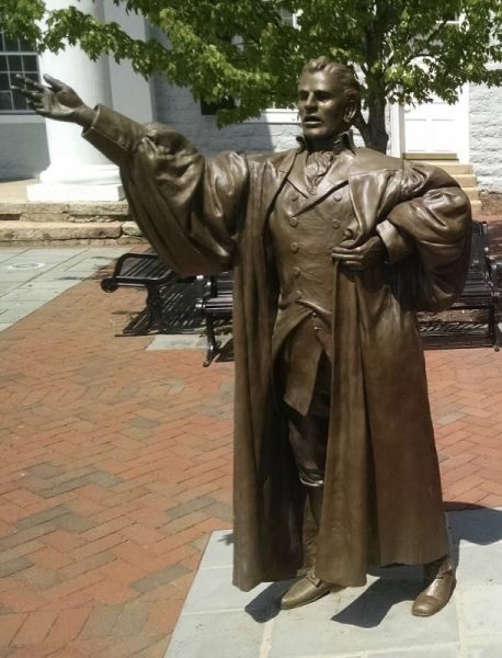 The Rev. Peter Muhlenberg of Woodstock, Virginia, preached regularly for the cause of freedom for the American colonists. He had a surprise for his congregation on the day of his final service in his Woodstock church to drive home his point that the American Revolution must succeed. Following the final hymn, he threw off his black robe as he recited Ecclesiastes Chapter 3 to reveal his uniform of a militia colonel. He then recruited men from his congregation to join the fight for independence, and they became known as the “German Regiment.” He had been licensed as an Anglican priest and ministered to the German settlers of the Shenandoah Valley. He served with honor as a Revolutionary War officer and rose to the rank of major general. There is a statue of this black-robed priest in the yard of the old courthouse in Woodstock honoring the Rev. Major General John Peter Gabriel Muhlenberg, Priest, Patriot, Soldier, and Hero.