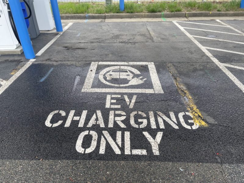 One of Pilot’s EV Charging Stations on Interstate 95. (Photo by Nathaniel Cline/Virginia Mercury)