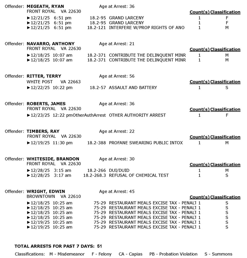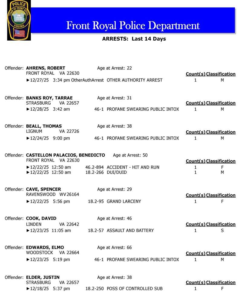 POLICE: 14 Day FRPD Arrest Report 12/15/2025