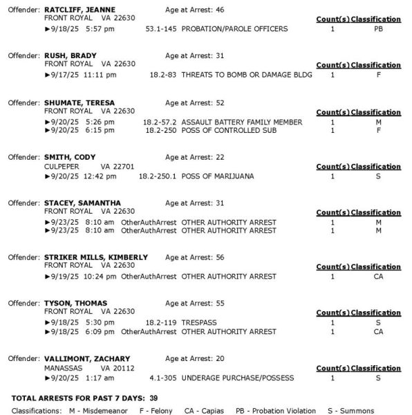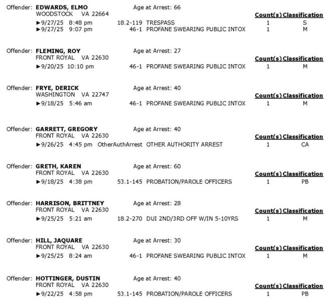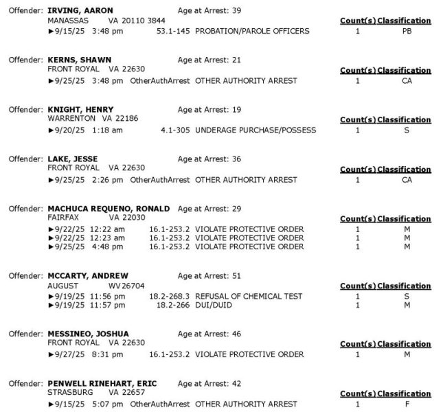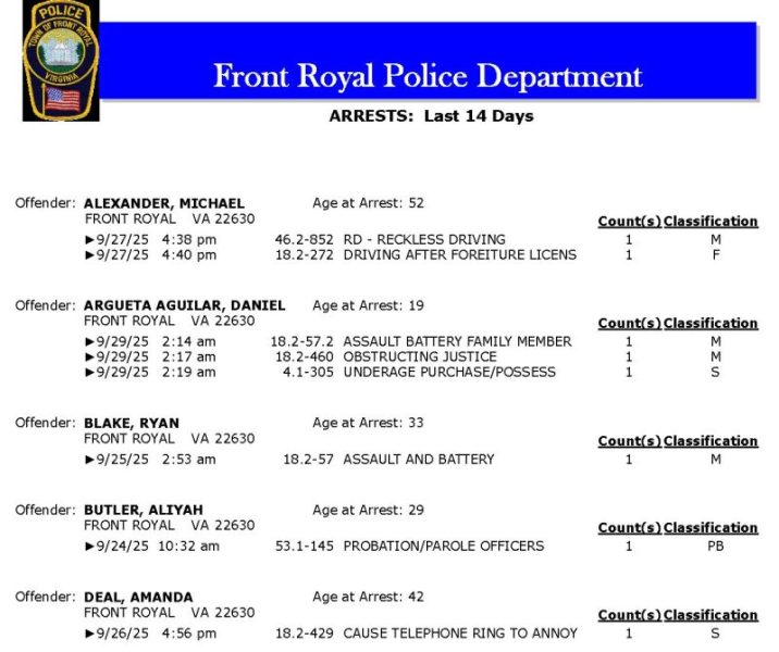 POLICE: 14 Day FRPD Arrest Report 9/15/2025
