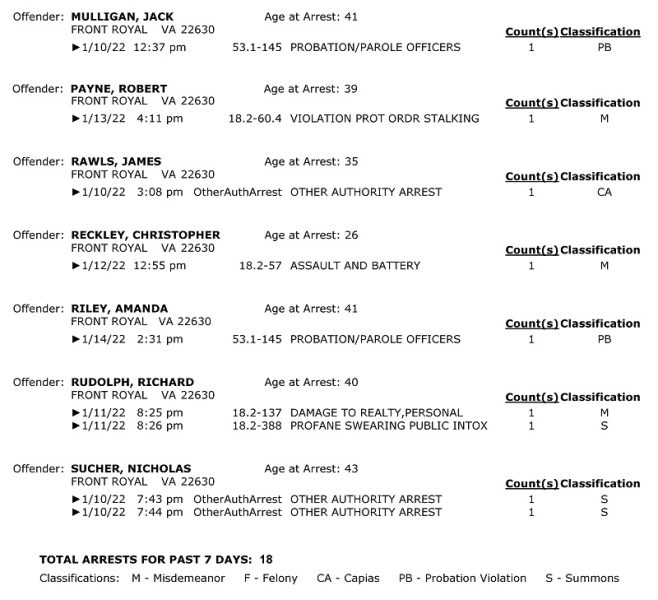 POLICE: 7 Day FRPD Arrest Report 1/17/2022