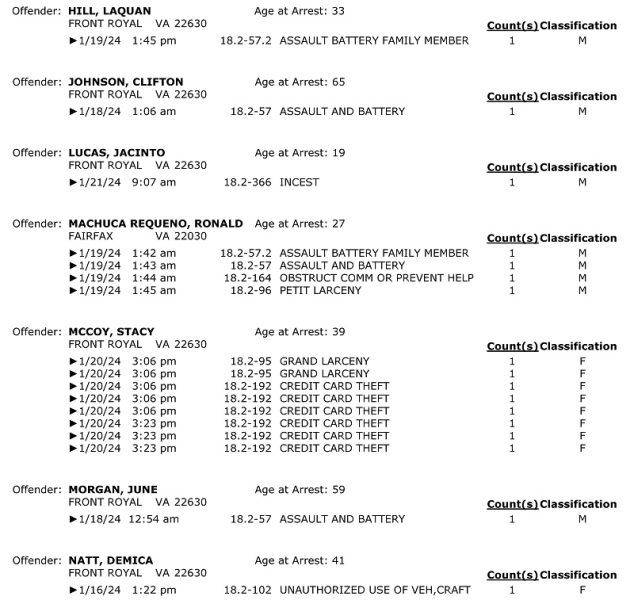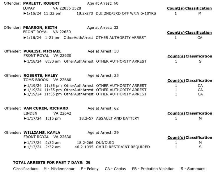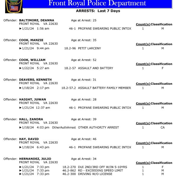 POLICE: 7 Day FRPD Arrest Report 1/22/2024